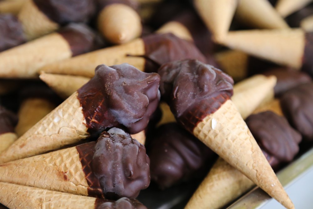 Our ice cream sticks are stuffed one by one in hand and dipped in various coatings. The thing for us is to harmoniously combine the filling with the outer coating and that is why we carefully choose these combinations. For example, for the success of ferrero rocher, we choose to put on schnitzel and caramelized hazelnut, so that the final result is an extraordinary ice cream flavor.